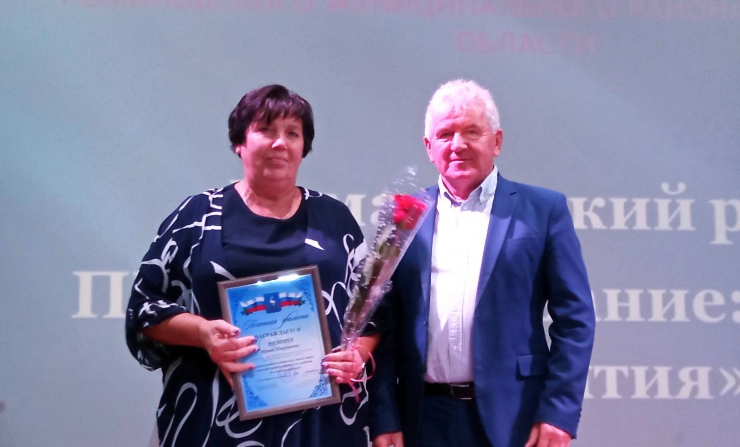 Почетной грамотой председателя Муниципального Собрания района Н.В. Швецова отмечены: учителя из п. Памятка С.Б. Мишенева, Г.С. Степина, Г.С. Кушнир, руководитель филиала Романовской СОШ в п. Красноармейский Н.А. Масюкова, учитель из с. Подгорное С.И. Чиченкова, учитель из с. Малое Щербедино Е.С. Жаркова, воспитатель детского сада «Теремок» И.А. Мячикова.