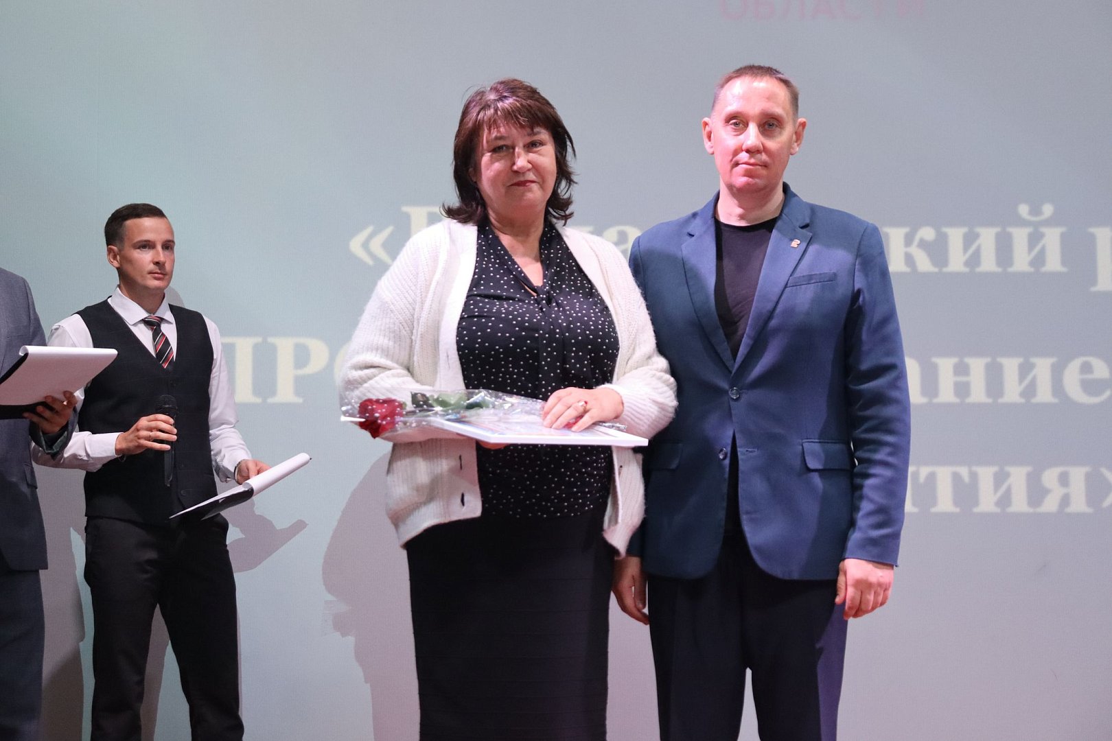 Важный аспект - кадровая работа. На ней тоже подробно остановились на конференции. Тем более этот год довольно плодотворный именно в образовании. В этом учебном году в муниципальном районе четыре молодых специалиста. На сцену пригласили: А.В. Прядивную, учителя русского языка и литературы; А.С. Синельникову, учителя английского языка; М.Е. Попову, учителя начальных классов; А.В. Чурсина, учителя математики и физики. Также в 2025 году район принял участие в программе «Сельский педагог», разместив свои актуальные вакансии. На сцену поднялись победители программы: Т.Ю. Гудырина, учитель истории и обществознания; Н.Ю. Коробов, учитель физической культуры и ОБЗР. Молодые специалисты А.В. Прядивная и А.С. Синельникова также являются победителями программы «Сельский педагог». Слова поздравлений в адрес педагогов с началом работы, пожелания добра и терпения прозвучали от имени Е.С. Исуповой – директора МУ «Методический центр» Романовского района.