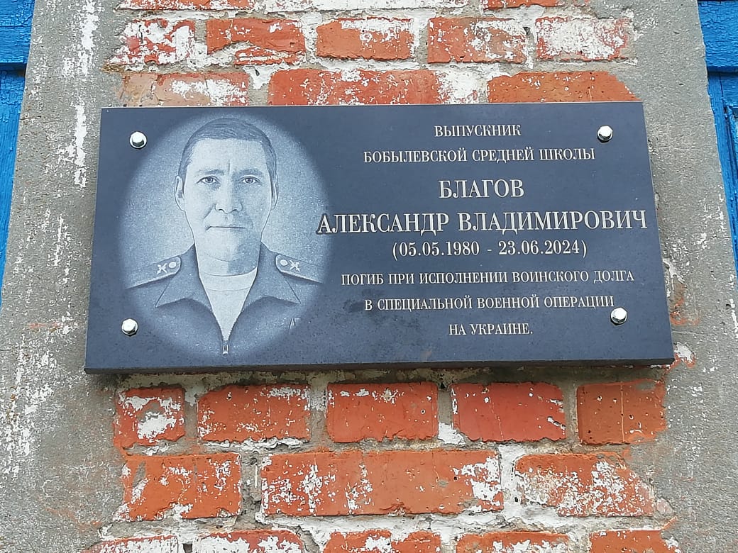 В начале августа в одном из филиалов Романовской СОШ им. И.В Серещенко в с. Бобылевка Романовского района была открыта мемориальная доска в память о ратном подвиге нашего земляка и ученика Бобылевской школы - Александра Владимировича Благова, погибшего на полях сражений специальной военной операции.