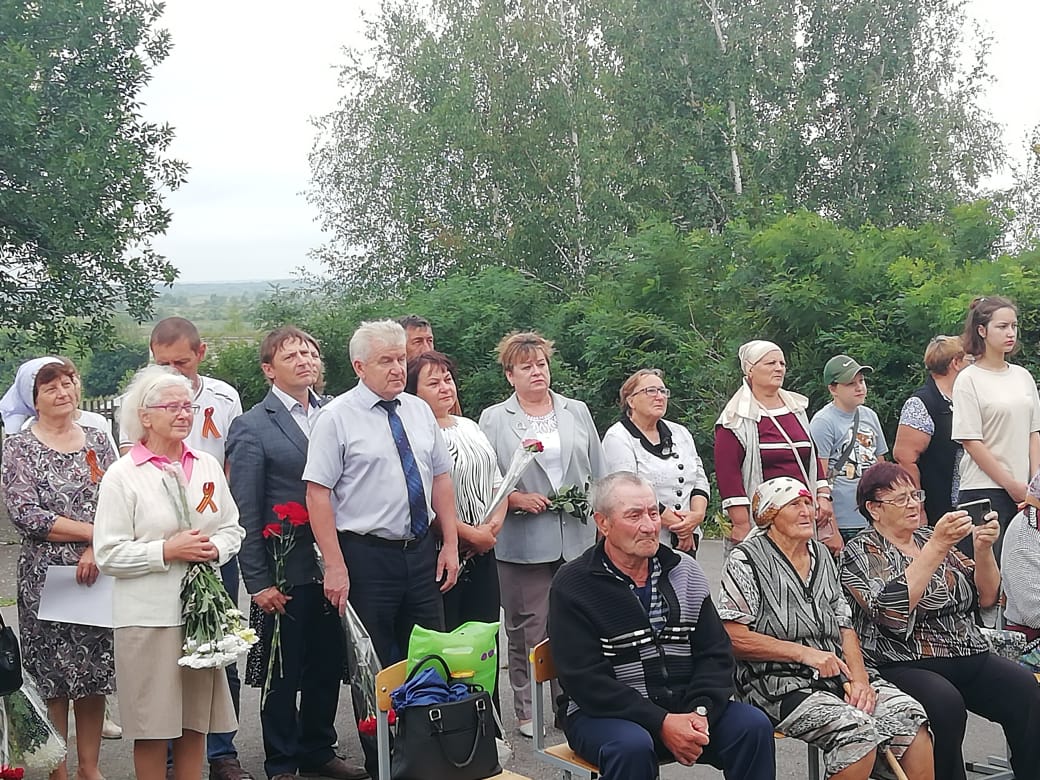 Участие в памятной церемонии приняли близкие родственники погибшего бойца, глава Романовского района А.И. Щербаков, глава Усть-Щербединского МО О.А. Щербинина, начальник управления образования Л.А. Дедова, директор филиала школы Д.С. Антонов, педагоги и учащиеся.