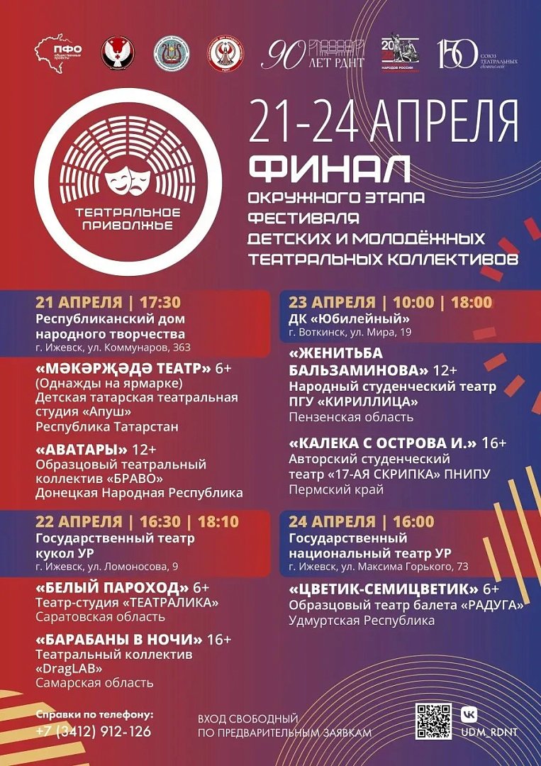 21-24 апреля в Удмуртии пройдёт финал VII сезона фестиваля детских и молодёжных театральных коллективов «Театральное Приволжье». Один из финалистов – детский театр-студия «Театралика» из Саратова.