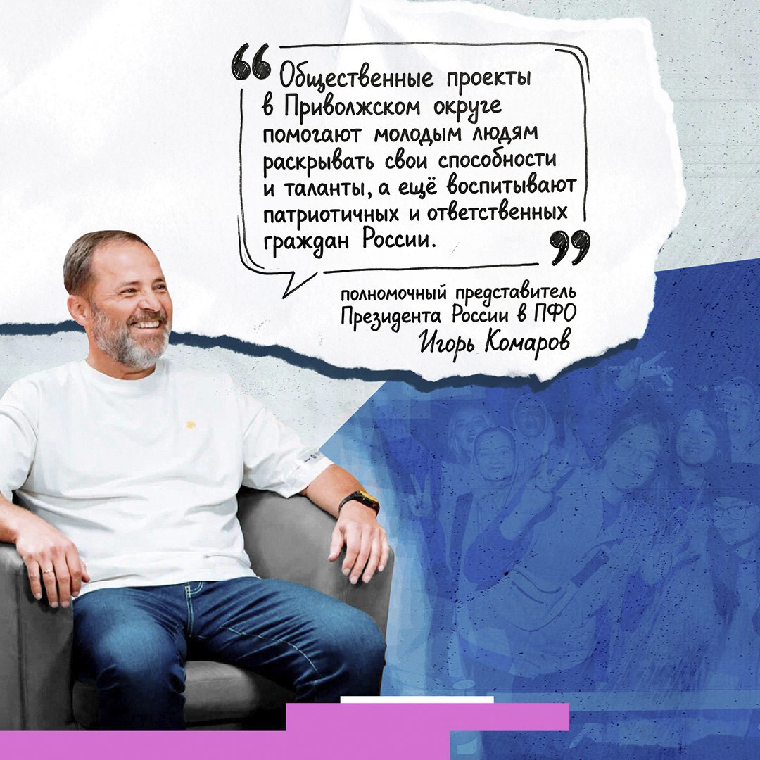 Как отметил полномочный представитель Президента РФ в ПФО Игорь Комаров, «общественные проекты в Приволжском округе помогают молодым людям раскрывать свои способности и таланты, а ещё воспитывают патриотичных и ответственных граждан России».