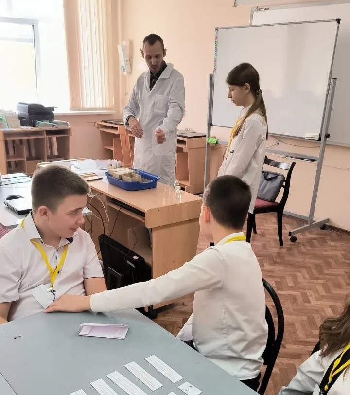 Шестиклассники на уроке Сергея Николаевича Тарасова, учителя химии МОУ Романовская СОШ имени И.В. Серещенко, получили дипломы, подтверждающие присвоение квалификации «Юный лаборант», подписанные самим Д.И. Менделеевым. Для этого ребятам пришлось немало потрудиться: командам нужно было пройти инструктаж по технике безопасности; провести химические опыты и сделать выводы; на основе анализа периодической системы химических элементов Д.И. Менделеева дать названия веществам. Работа была очень живой и интересной, после которой в умах шестиклассников, возможно, зародилась мысль: «А не выбрать ли мне профессию лаборанта?»
