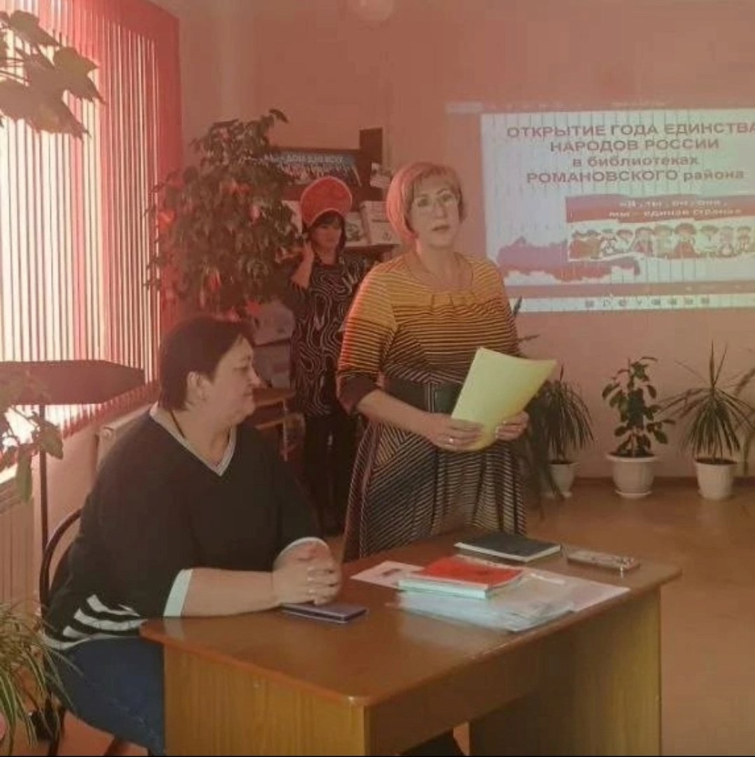 Официально объявляя Год единства народов России в Романовской библиотечной системе открытым, директор И.В. Сокол отметила, что в этом году нас ждут фестивали культур, уроки дружбы, познавательные мероприятия о регионах России. Мы узнаем больше о языках, обычаях и искусстве наших соседей по стране, чтобы лучше понимать и уважать друг друга. Мы сделаем его ярким, познавательным и по-настоящему объединяющим!