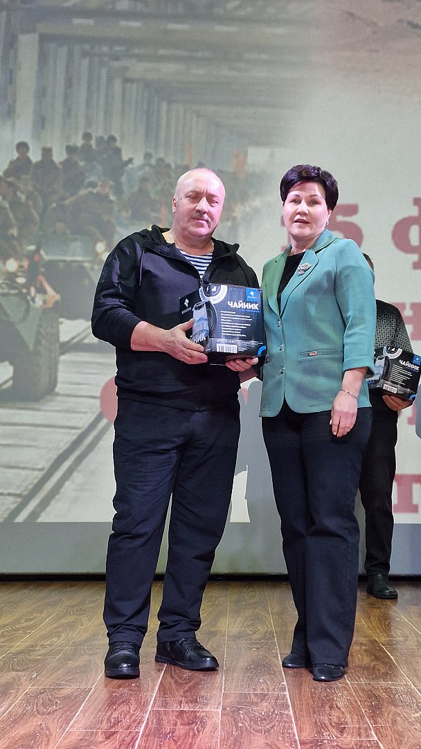 Ветераны под аплодисменты поднимаются на сцену, от администрации района им вручаются памятные подарки. В числе награжденных в этот день и сестра Владимира Алексеевича Синдеева из с. Подгорное, погибшего при исполнении интернационального долга. Минутой молчания присутствующие почтили память всех, кто погиб в войнах и конфликтах.