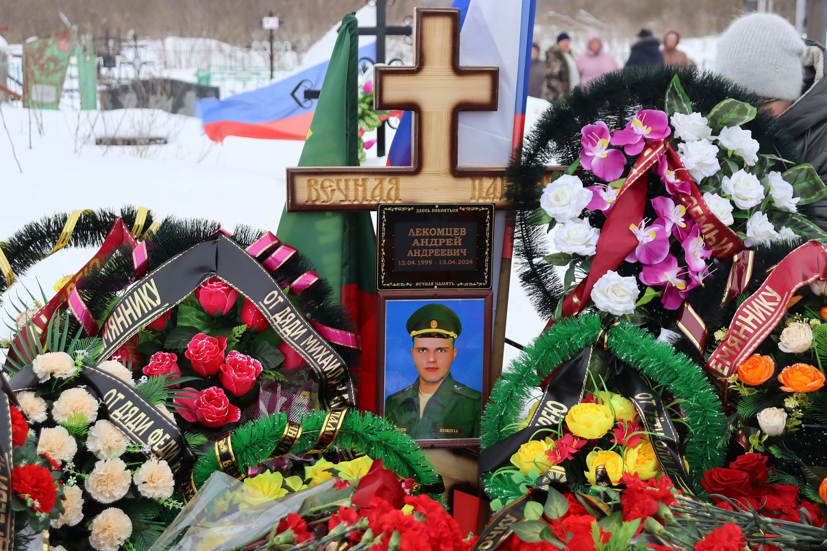 Проститься с А.А. Лекомцевым пришли его родные, друзья, жители села. Участие в траурном митинге приняли глава Романовского муниципального района А.И. Щербаков, представители военного комиссариата г. Балашова, Балашовского и Романовского районов и правительства Саратовской области.