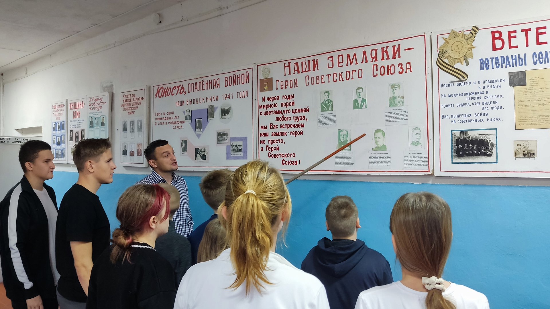 Ученики вместе с педагогом и членами школьного музея рассматривали стенды с фотографиями, письма, газетные публикации, копии наград и личные вещи земляков — настоящих героев, чьи имена навсегда вписаны в историю Саратовской области и всей России. Уроженцем села Бык Мордовокарайского МО является Герой Советского Союза Василий Николаевич Сидорин.