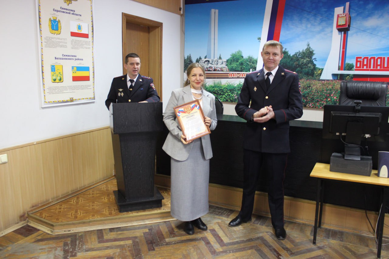 Общественники отмечены благодарственными письмами начальника межмуниципального отдела МВД России «Балашовский».